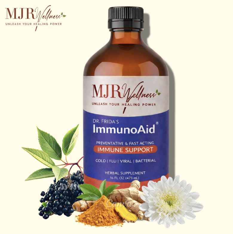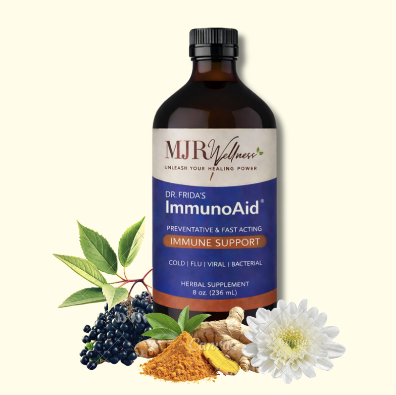 Unleash your healing power with ImmunoAid, a potent herbal formula handcrafted by Dr. Frida Davydov, holistic doctor and founder of MJR Wellness. ImmunoAid is your daily defense blend—designed to support your immune system, strengthen your body’s natural response, and promote overall wellness from within.